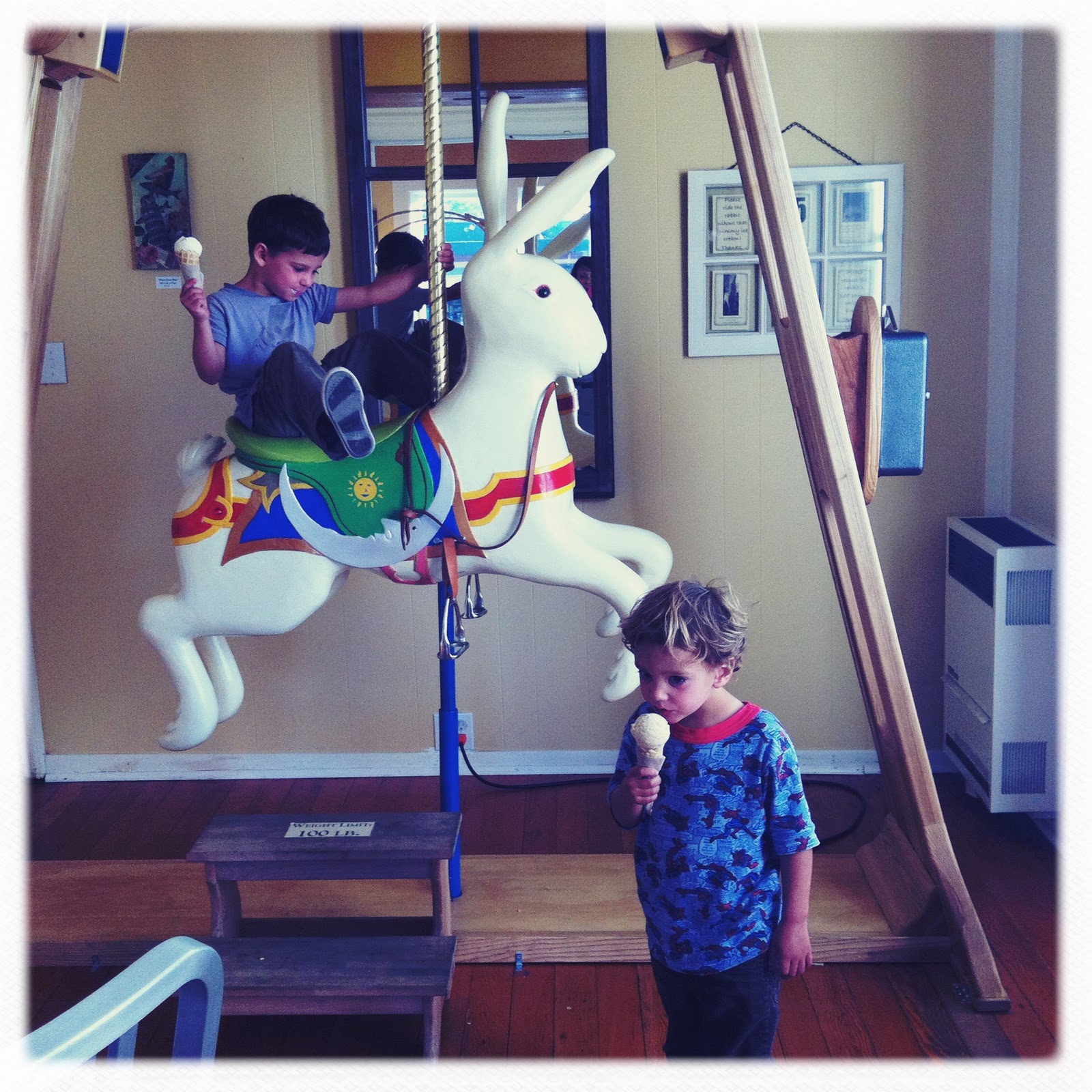 Ice cream was in order yesterday afternoon when i picked Little B up from school. We headed to Scoop for some delicious treats and to our surprise they had added some new awesomeness to to the store. An artist from Washington crafted the pieces out of wood and they couldn't be more beautiful. We chose the Deep Seeded Farm Strawberry flavor - our favorite local strawberry as pictured above from our recent farm visit and I enjoyed a dairy free mint chocolate.